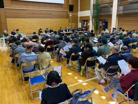 各班長、副班長、15戸以上の班からもう1名の代議員に参加いただき、